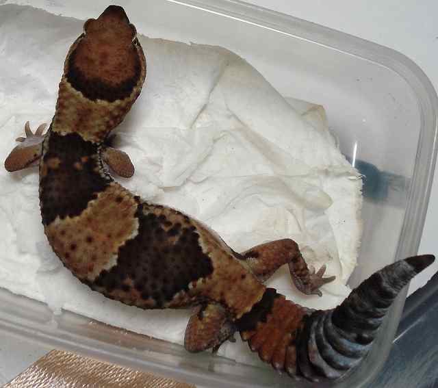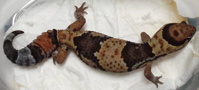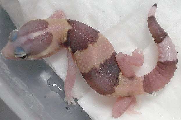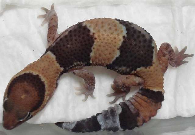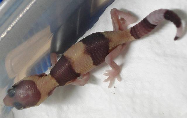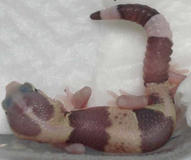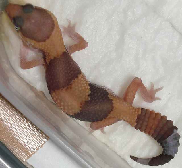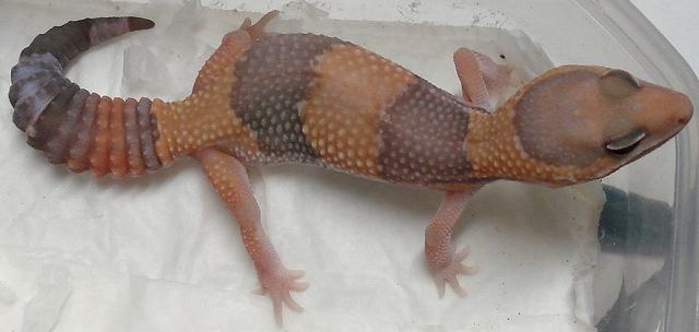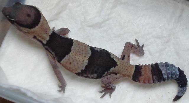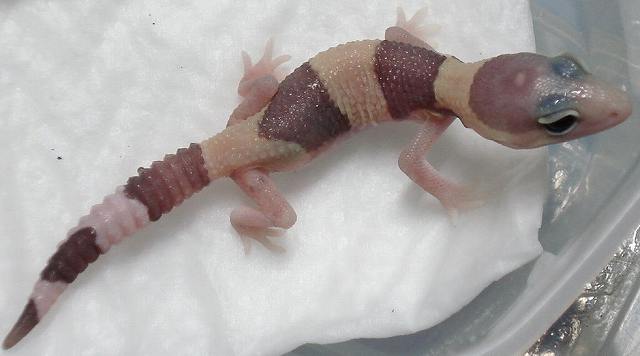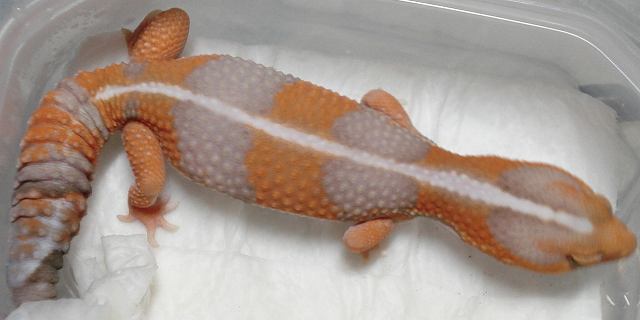 アルビノファットテール 産 卵:2007.4.12 ハッチ日:2007.6.5 体重:2.9g(孵化温度約30.5℃) 購入店:自家ブリード ブリーダー:日本、ヘラクレス 親:AFS9♂×AF17♀ |