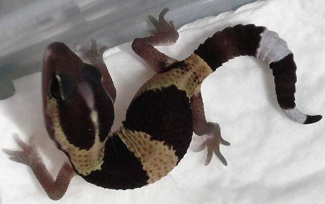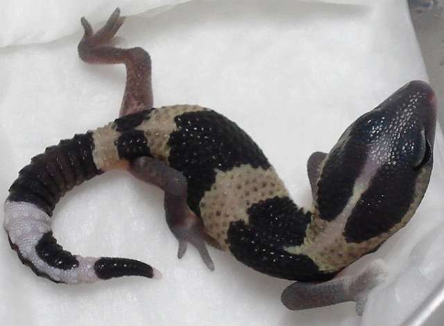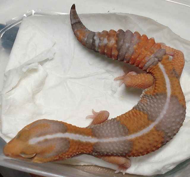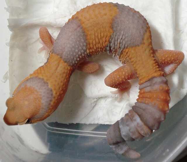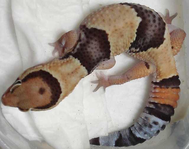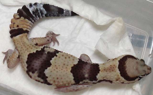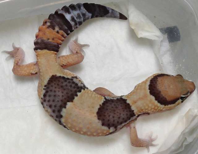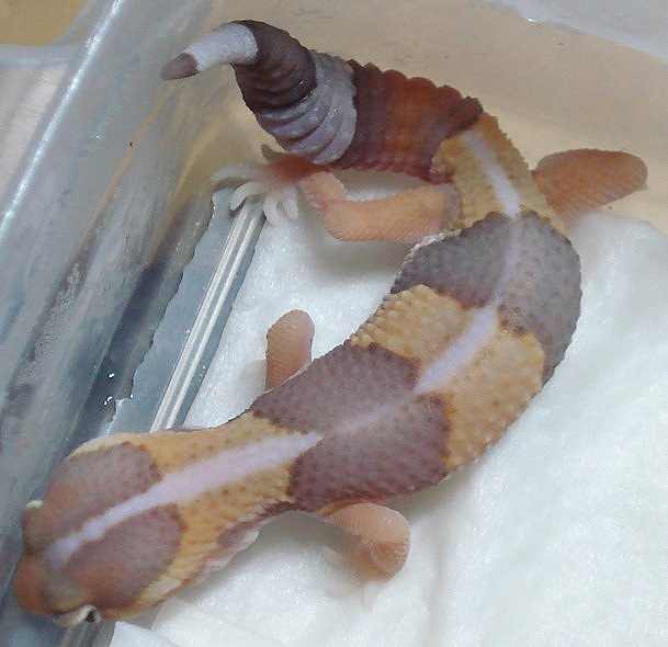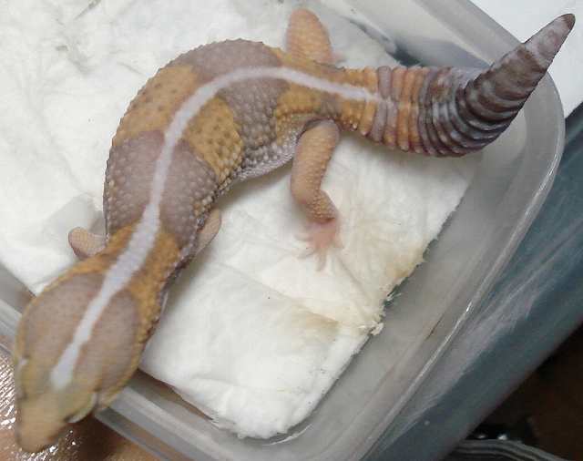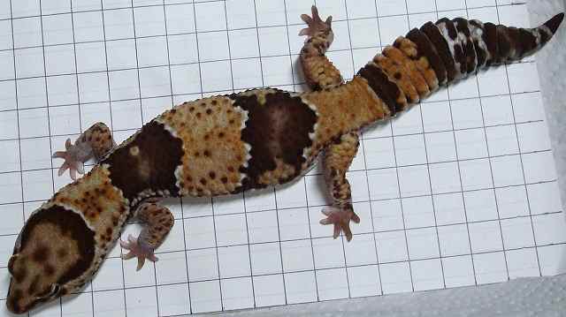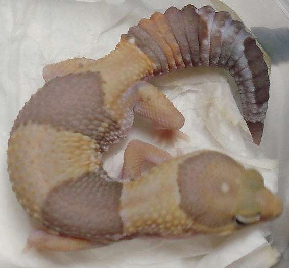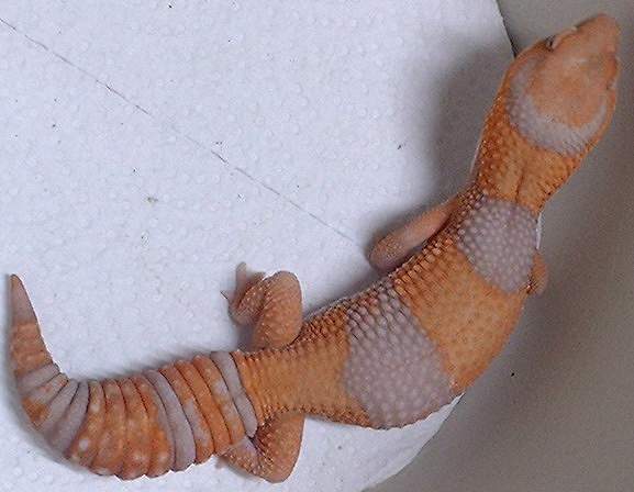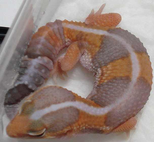 66%PHアルビノファットテール ハッチ日:2007.10.11 体重:2.4g(孵化温度約30.5℃) 購入店:自家ブリード ブリーダー:日本、ヘラクレス 親:AF06−17WS♂(ホワイトソックス)×AF23♀ |