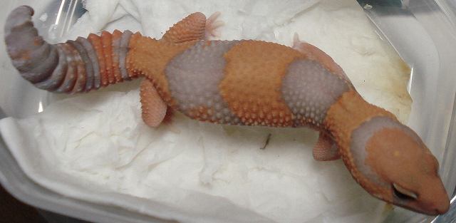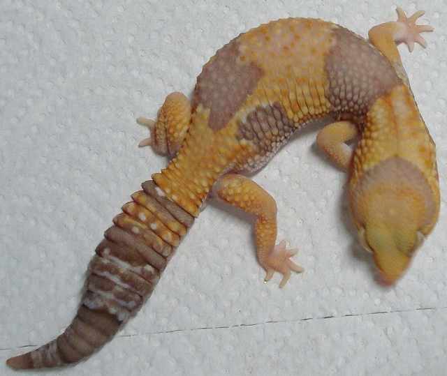 ♂ | ヘテロアルビノファットテール ■■売切れ■■ ■特価30,000円■ ■50,000円■ 産 卵:2007.7.6 ハッチ日:2007.8.25 体重:2.8g(孵化温度約30.5℃) 購入店:自家ブリード ブリーダー:日本、ヘラクレス 親:AF11♂×AFS06−6♀ |