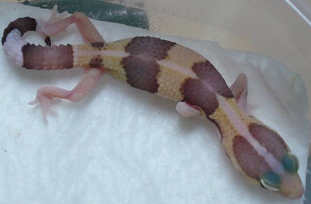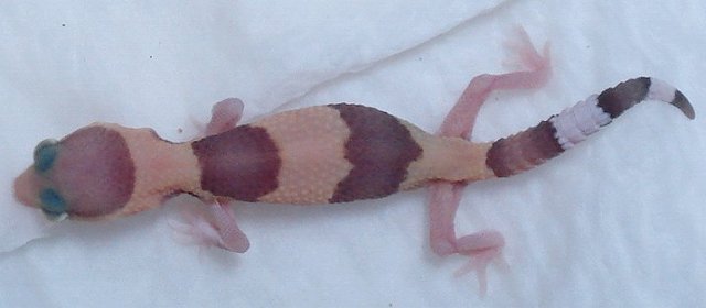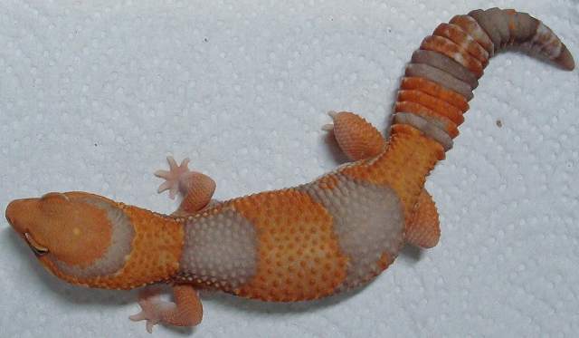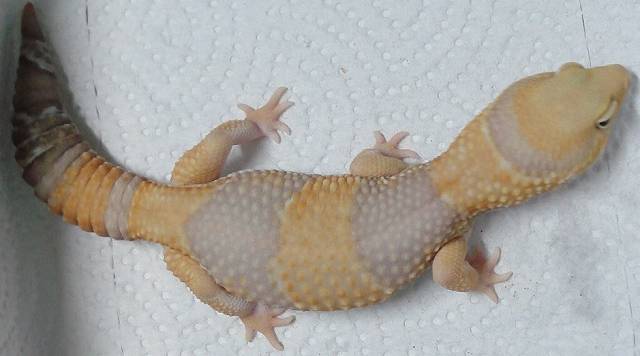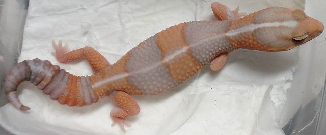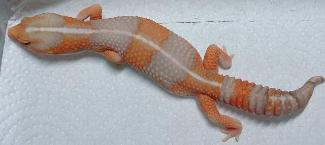 ♀ | アルビノファットテール ストライプ ■■売切れ■■ ■35,000円■ 産 卵:2007.3.28 ハッチ日:2007.5.23 体重:2.9g(孵化温度約30.5℃) 購入店:自家ブリード ブリーダー:日本、ヘラクレス 親:AFS9♂×AF17♀ |