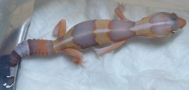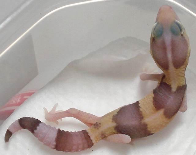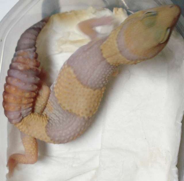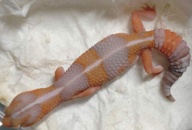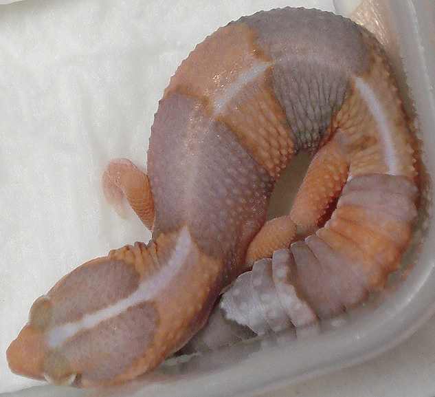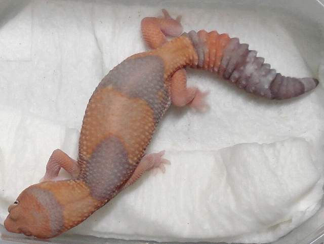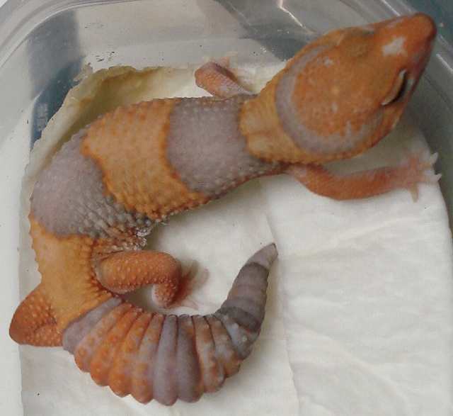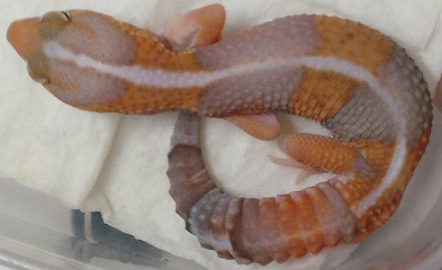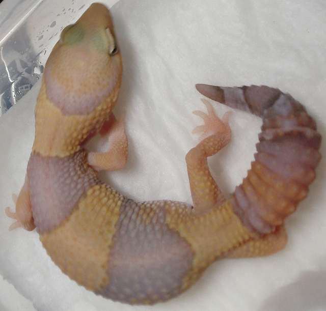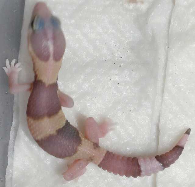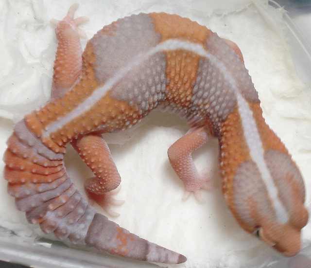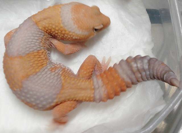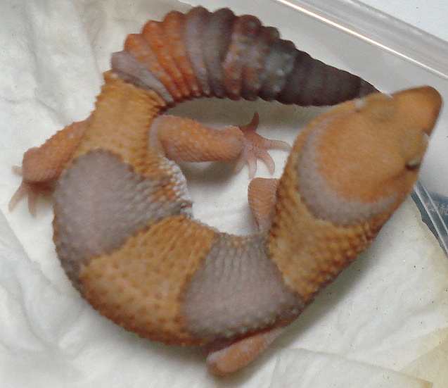 ♀ | アルビノファットテール 産 卵:2007.4.30 ハッチ日:2007.6.22 体重:3.3g(孵化温度約30.5℃) 購入店:自家ブリード ブリーダー:日本、ヘラクレス 親:AFS12♂×AF1♀ |