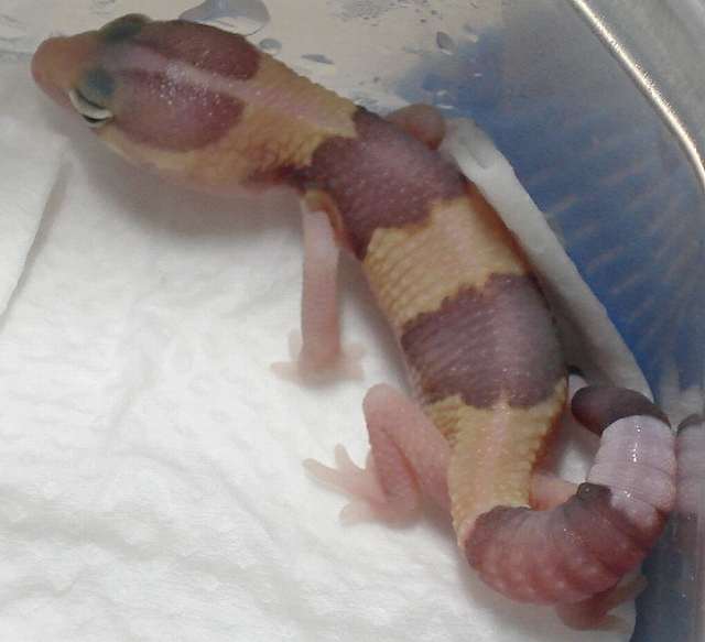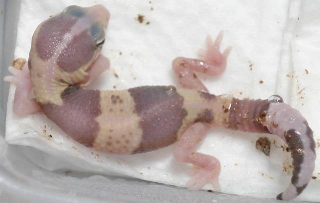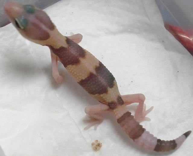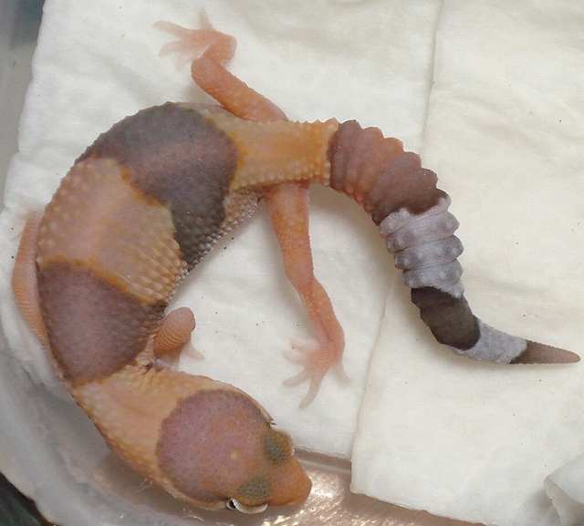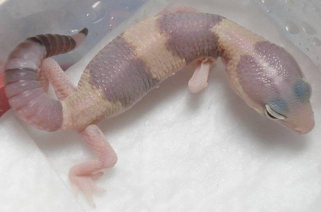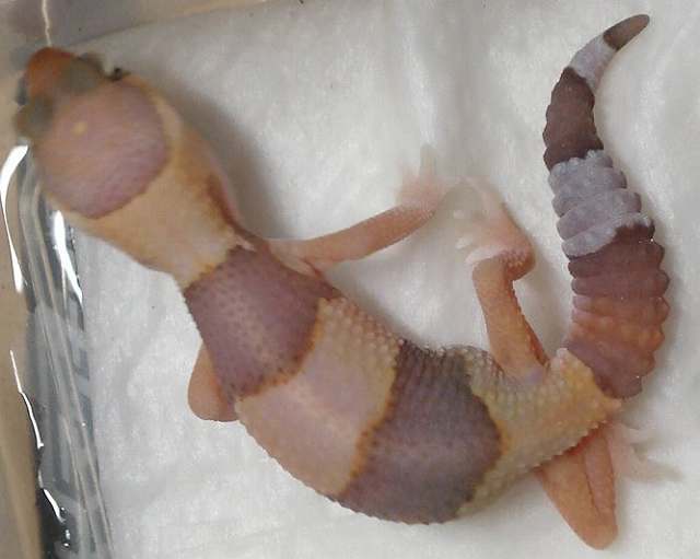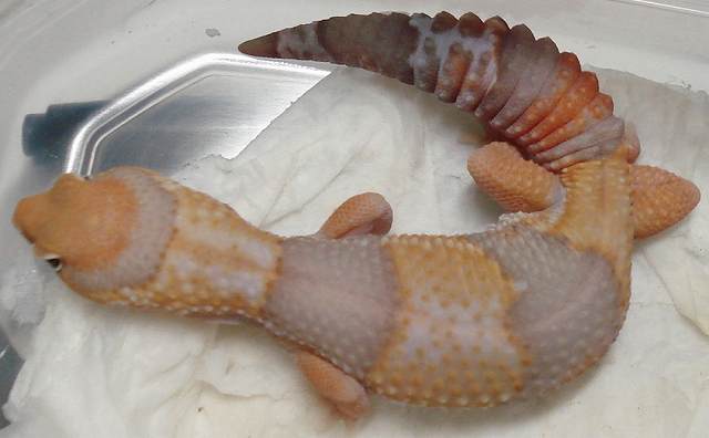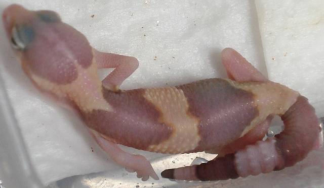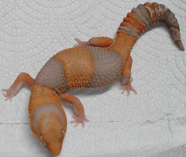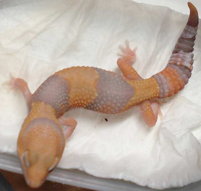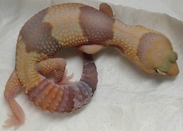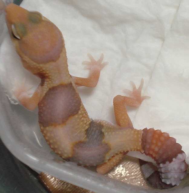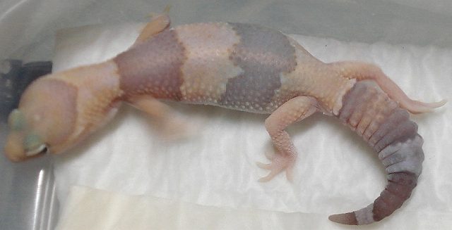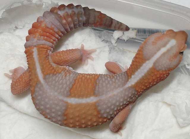 ♀ | アルビノファットテール 産 卵:2007.4.30 ハッチ日:2007.6.22 体重:3.3g(孵化温度約30.5℃) 購入店:自家ブリード ブリーダー:日本、ヘラクレス 親:AFS12♂×AF1♀ |