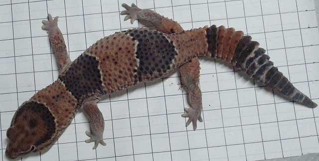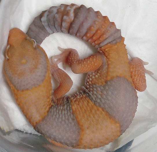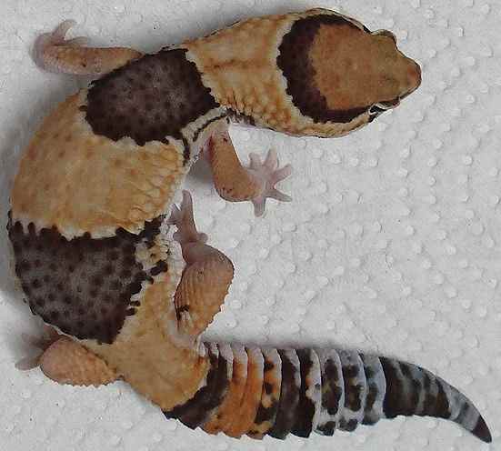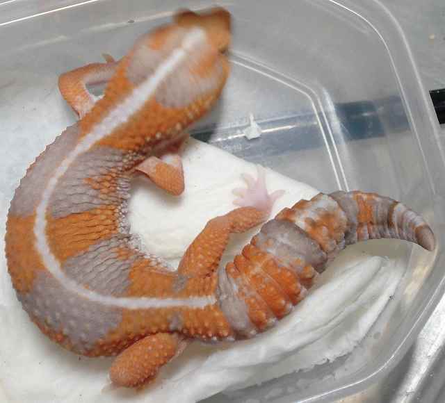 ♂ | 66%PHアルビノファットテール ■特価25,000円■ ■50,000円■ 産 卵:2007.8.25 ハッチ日:2007.10.11 体重:2.6g(孵化温度約30.5℃) 購入店:自家ブリード ブリーダー:日本、ヘラクレス 親:AF06−17WS♂(ホワイトソックス)×AF23♀ |