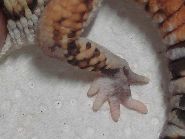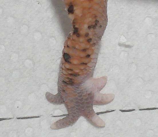 ♂ | ヘテロアルビノファットテール ◇ホワイトソックス◇ 右後足指先3本(1〜3番) ■200,000円■ 産 卵:2007.6.13 ハッチ日:2007.8.2 体重:2.9g(孵化温度約30.5℃) 購入店:自家ブリード ブリーダー:日本、ヘラクレス 親:AF11♂×AF31♀ |