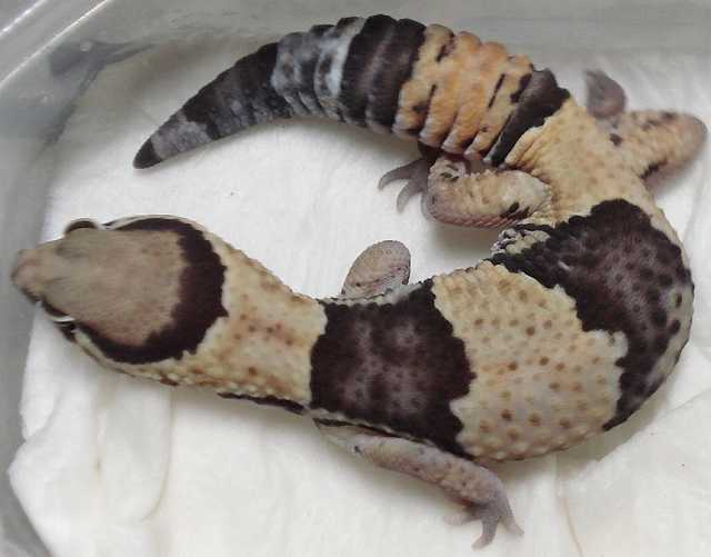 アルビノファットテール ■25,000円■ 産 卵:2007.5.6 ハッチ日:2007.6.28 体重:3.0g(孵化温度約30.5℃) 購入店:自家ブリード ブリーダー:日本、ヘラクレス 親:AFS9♂×AF05−6♀ |