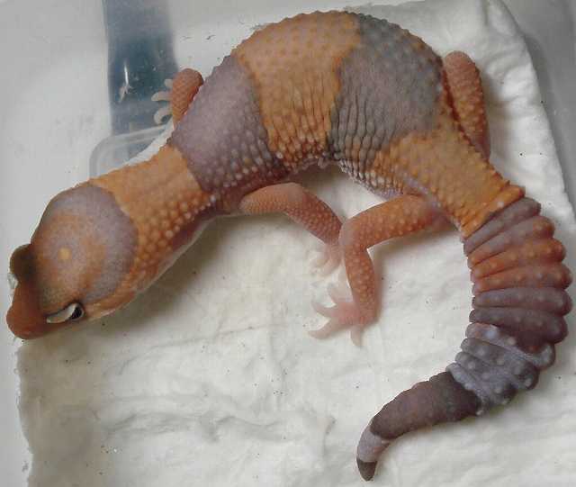 ♀ | ■AF07−9 ヘテロアルビノファットテール ■■非売品■■ 産 卵:2007.4.24 ハッチ日:2007.6.18 体重:3.0g(孵化温度約30.5℃) 購入店:自家ブリード ブリーダー:日本、ヘラクレス 親:AFS11♂×FSWS1♀(ホワイトソックス) |