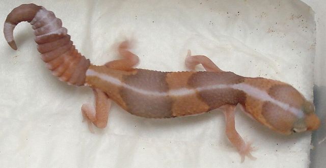 ♀ | ■AFS07−12 アルビノファットテール ストライプ ■■非売品■■ 産 卵:2007.4.6 ハッチ日:2007.5.31 体重:2.8g(孵化温度約30.5℃) 購入店:自家ブリード ブリーダー:日本、ヘラクレス 親:AFS11♂×AFS05−6♀ |