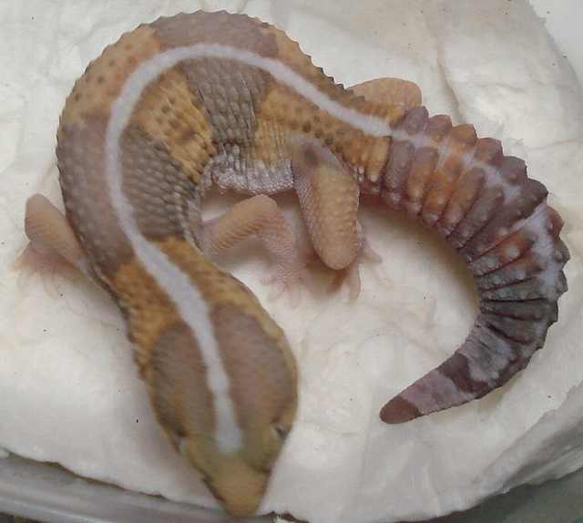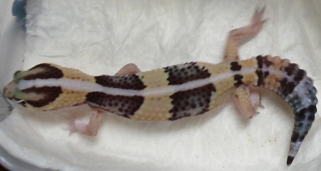 ■AFS07− アルビノファットテール ストライプ 産 卵:2007.. ハッチ日:2007.. 体重:g(孵化温度約30.5℃) 購入店:自家ブリード ブリーダー:日本、ヘラクレス 親:♂×♀ |