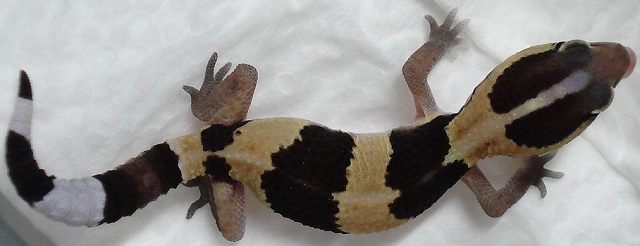 ♀ | アルビノファットテール ストライプ ■■売切れ■■ ■40,000円■ ハッチ日:2007.5.23 体重:3.3g(孵化温度約30.5℃) 購入店:自家ブリード ブリーダー:日本、ヘラクレス 親:AFS12♂×AF1♀ |