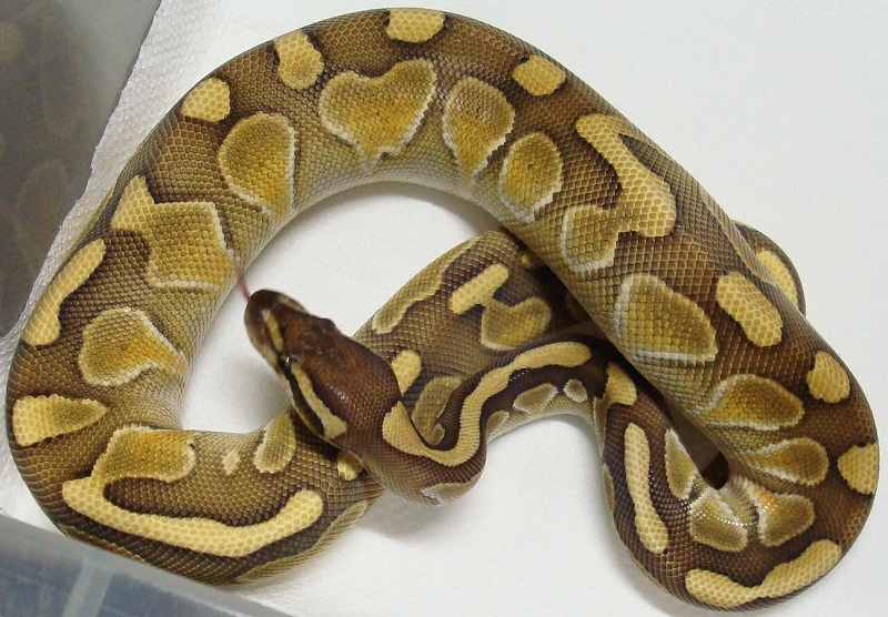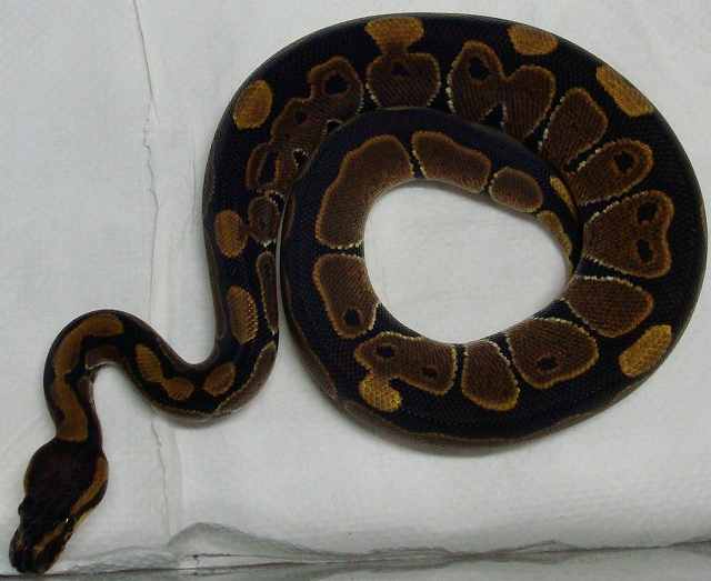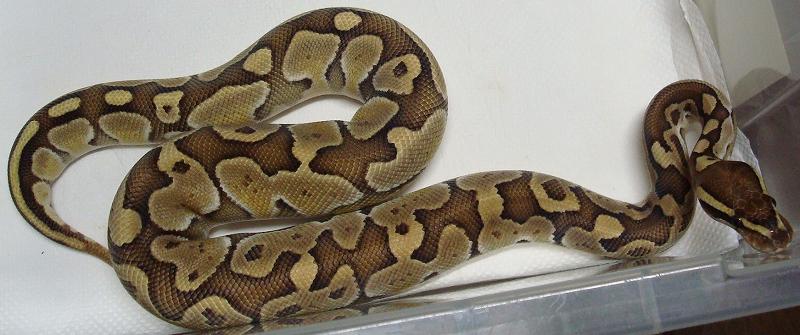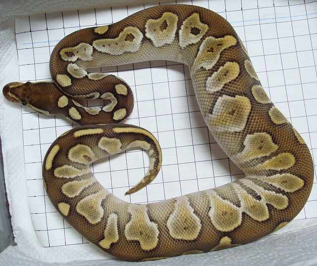 ♀ | ノーマル ■■売切れ■■ ハッチ日:2009.6.12 体重:89g(孵化温度約30.5℃) 購入店:自家ブリード ブリーダー:日本、ヘラクレス 親:BPLP1♂(50%ポッシブルヘテロパイボール) ×BP12♀ |