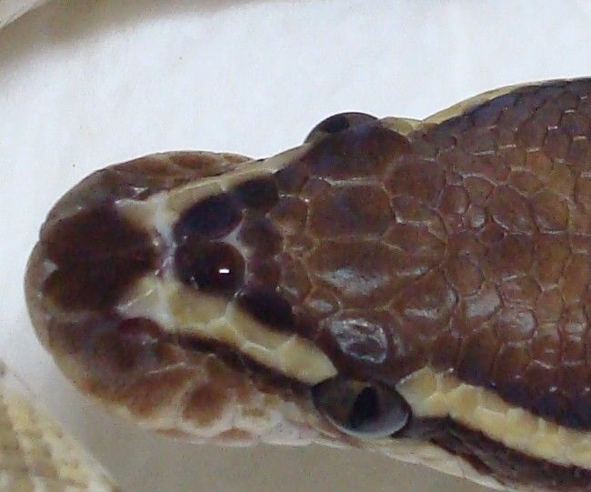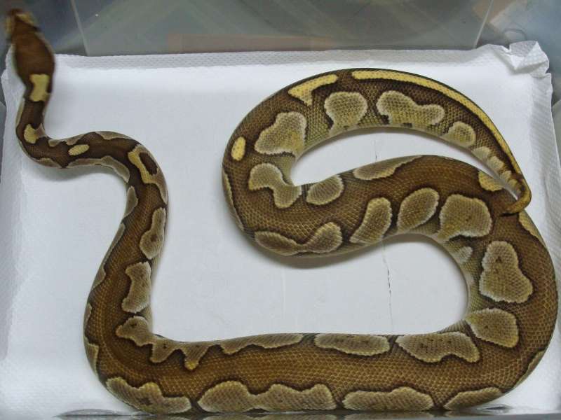 ♀ | ■BPLP09−7 レッサープラチナ 鼻先上面に小さな擦り傷治癒跡あり。 治癒痕画像 ほぼ完治。 ブリーディングと通常生活に問題なし ■非売品■ 産 卵:2009.4.16 ハッチ日:2009.6.18 体重:57g(孵化温度約30.5℃) 購入店:自家ブリード ブリーダー:日本、ヘラクレス 親:BPLP2♂×BP5♀ |