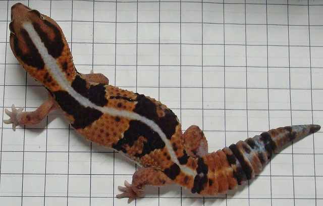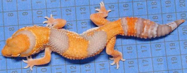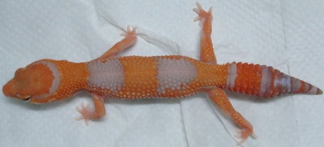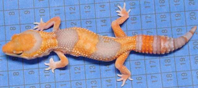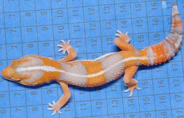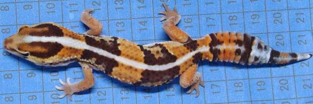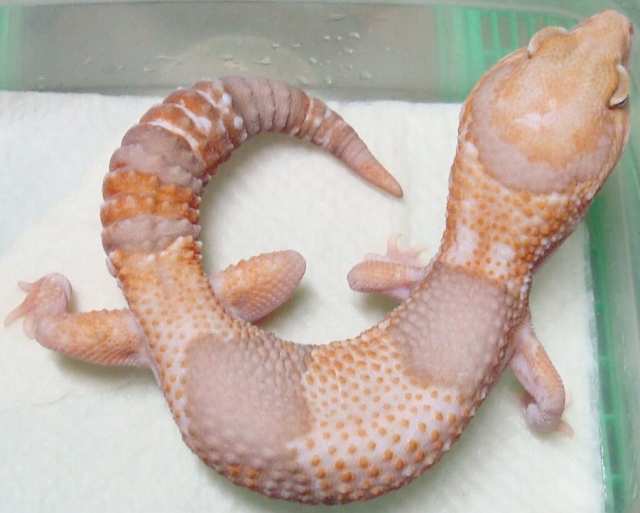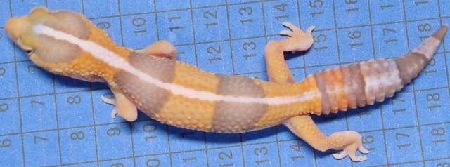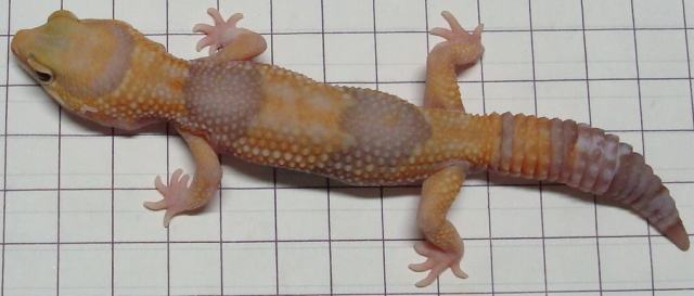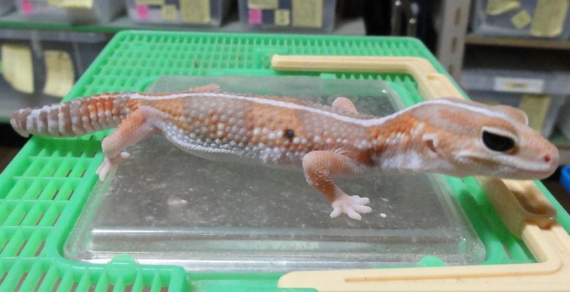 ♂ | ALニシアフリカトカゲモドキ ■特価20,000円■ 産 卵:2010.4.14 ハッチ日:2010.6.3 体重:2.1g(孵化温度約31.5℃) 購入店:自家ブリード ブリーダー:日本、ヘラクレス 親:F09−27♂×F08−311♀ |