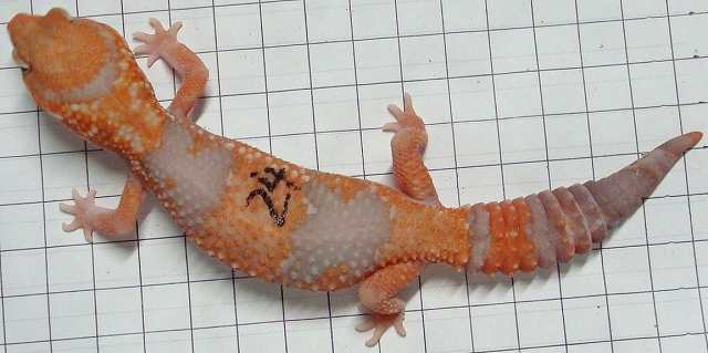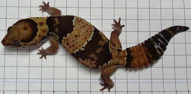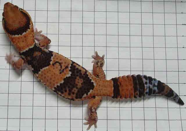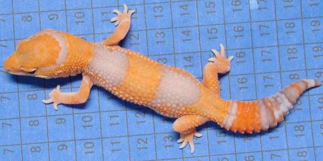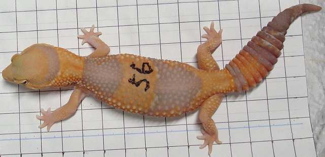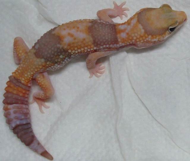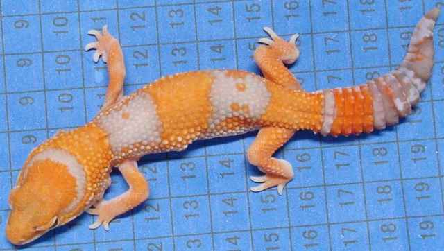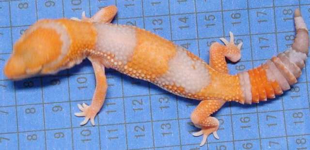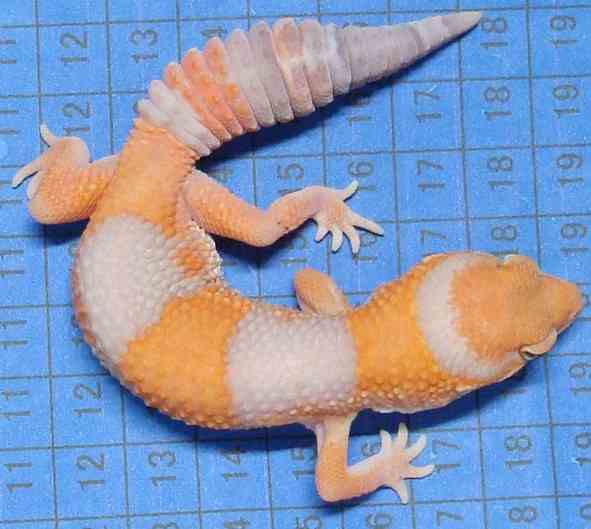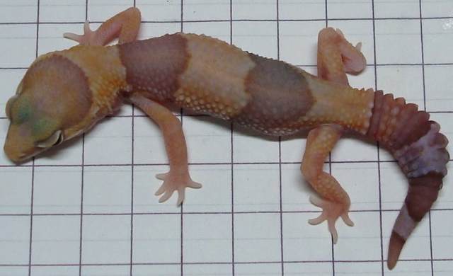 ♂ | HALニシアフリカトカゲモドキ 産 卵:2010.4.10 ハッチ日:2010.5.31 体重:2.4g(孵化温度約31.5℃) 購入店:自家ブリード ブリーダー:日本、ヘラクレス 親:F08−30♂×F08−324♀ |