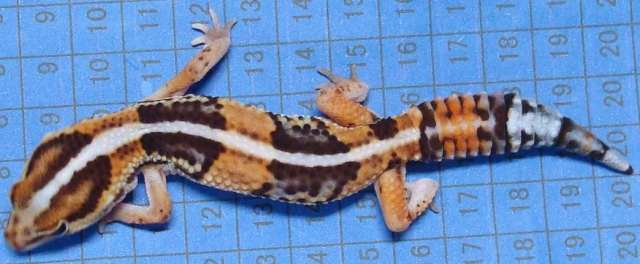 ♂ | ALニシアフリカトカゲモドキ 産 卵:2010.4.10 ハッチ日:2010.5.30 体重:2.1g(孵化温度約31.5℃) 購入店:自家ブリード ブリーダー:日本、ヘラクレス 親:AF07−36J♂×F08−337♀ |