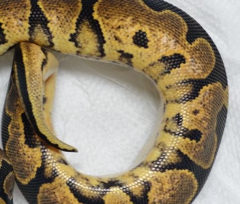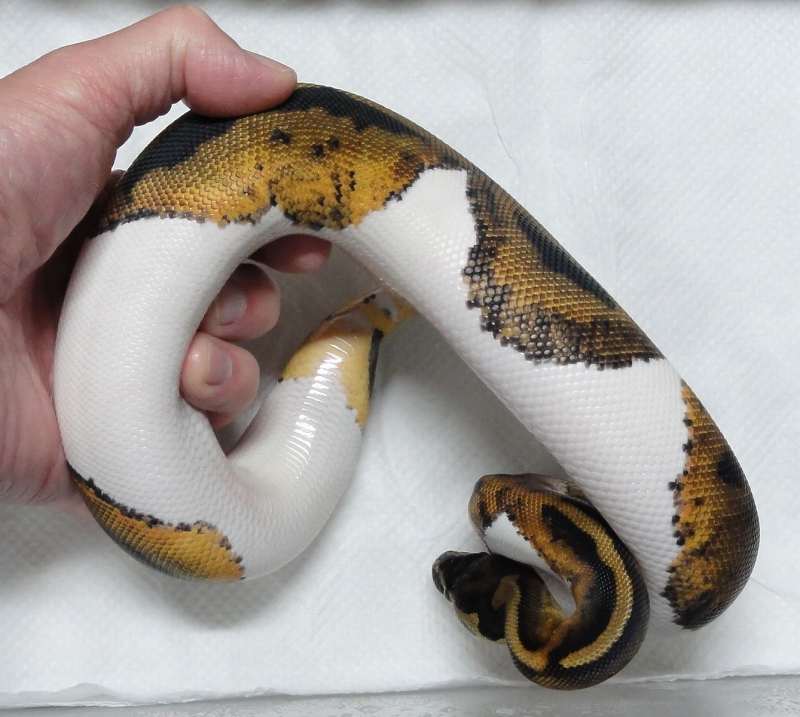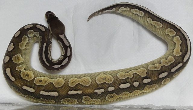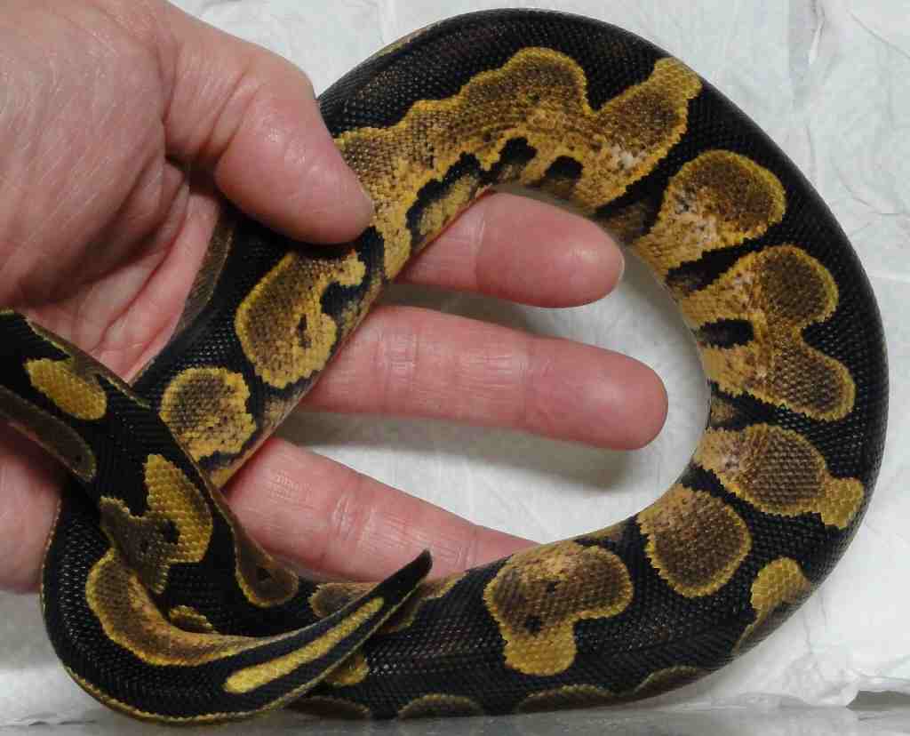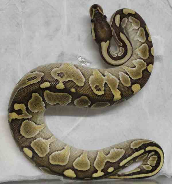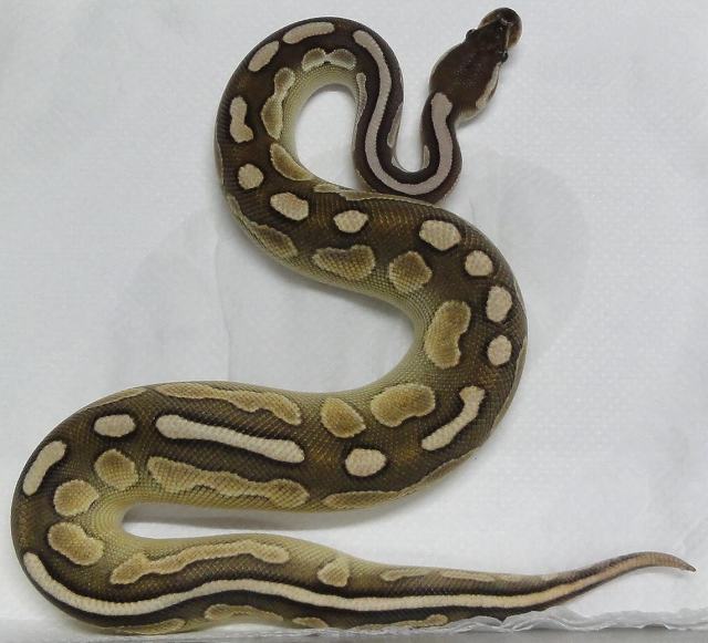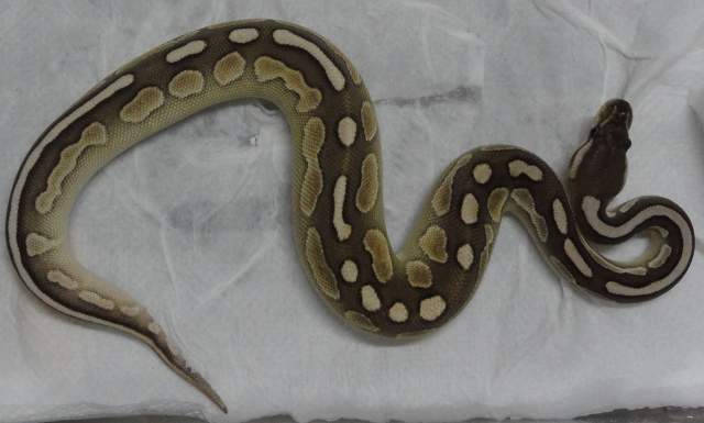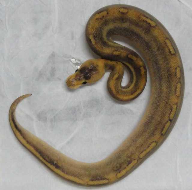 ♂ | ヘテロパイボール ■売切れ■ ■特価、10,000円■■ 産 卵:2012.04.03 ハッチ日:2012.06.05 体重:80g(孵化温度約31℃) 購入店:自家ブリード ブリーダー:日本、ヘラクレス 親:BPPB−7♂(パイボール)× BPPB−6♀(ヘテロパイボール) |