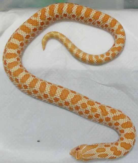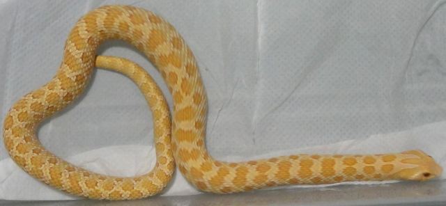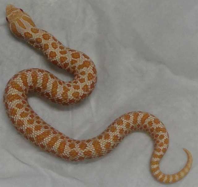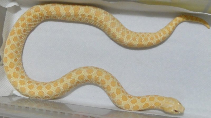 ♂ | アルビノセイブシシバナ ■売切れ■ ■40,000円■ 現在の餌:冷凍ピンクSS 産 卵:2012.06.30 ハッチ日:2012.08.18 体重:?g(孵化温度約29℃) 購入店:自家ブリード ブリーダー:日本、ヘラクレス 親:ALWH10−4♂×ALWH07−2♀ |