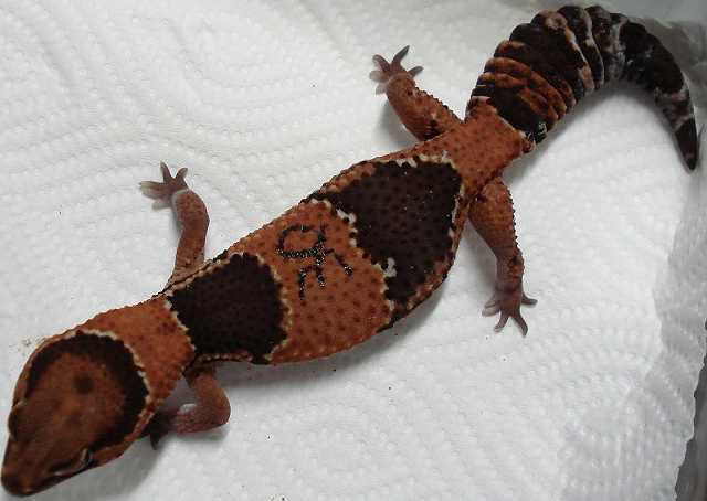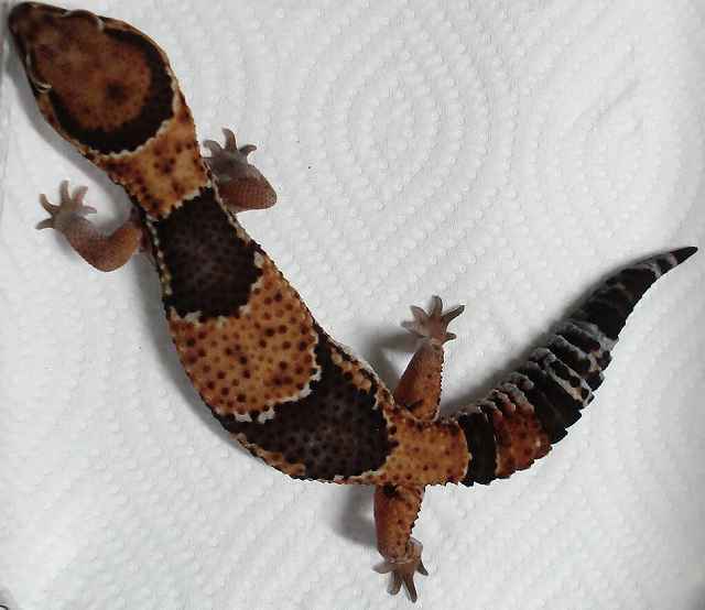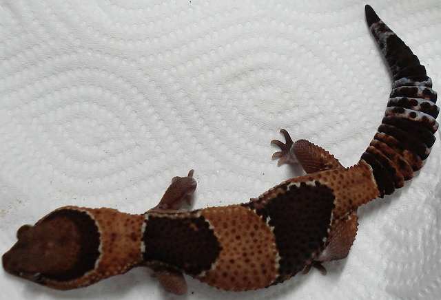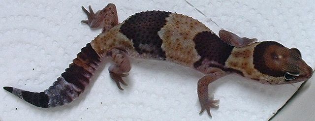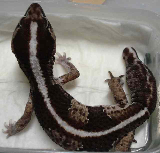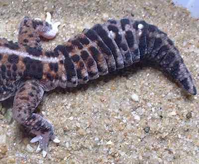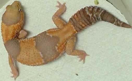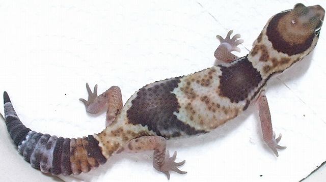 ♀ | ヘテロアルビノファットテール ハイホワイトバンド血統 B=腰骨変形 2008年5クラッチ産卵実績有り |