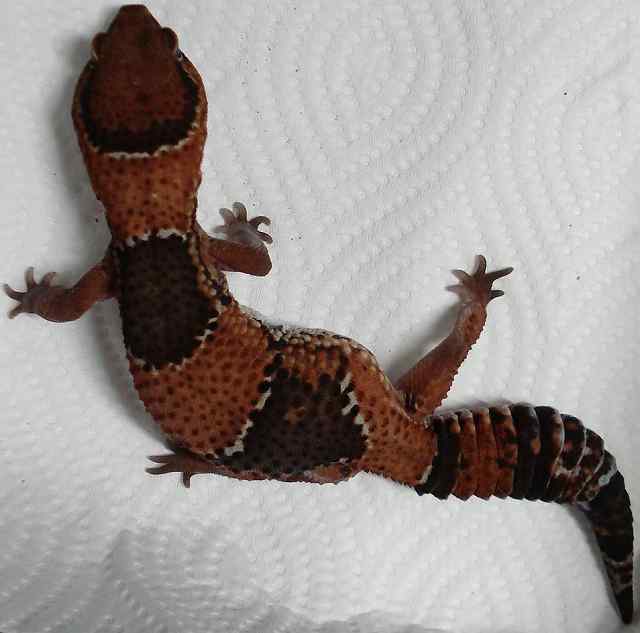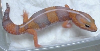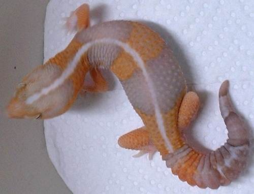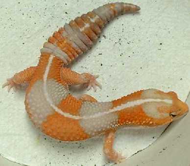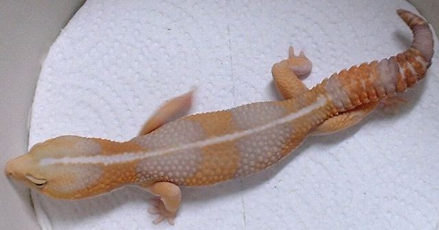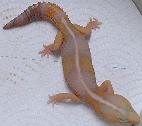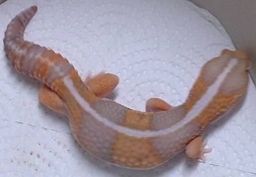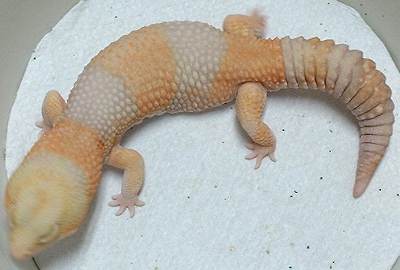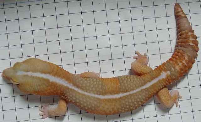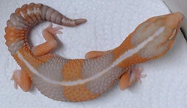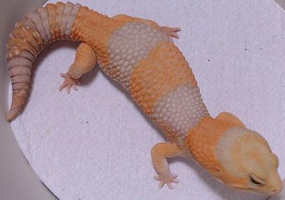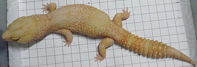 ♂ | アルビノファットテール うすいオレンジ +(クリーム色っぽい)ホワイトバンド ●持っている遺伝子↓ ◎アルビノ ◎ハイホワイトバンド ●持っているかもしれない遺伝子↓ △ストライプ △ホワイトソックス △ジャングル △タンジェリン これだけの可能性を秘めた個体は、 貴重だと思います。 |