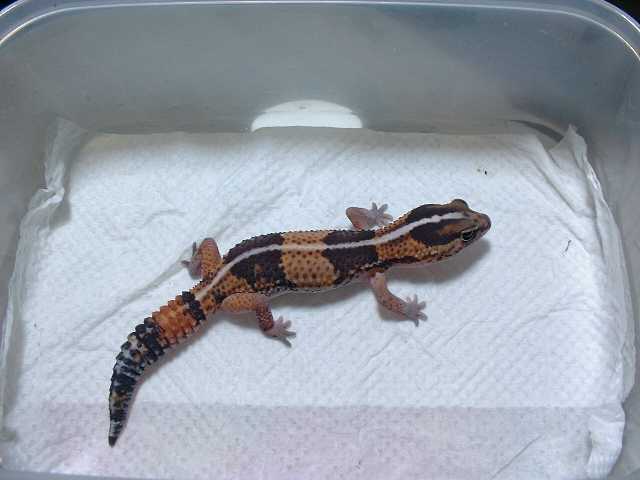 購入日:2002.12.3、25.0g 現在体重:36.6g(2003.3.15) 購入店:ドラゴンハープタイルジャパン ブリーダー:日本、? ハッチ日:? 親:♂?×♀? |