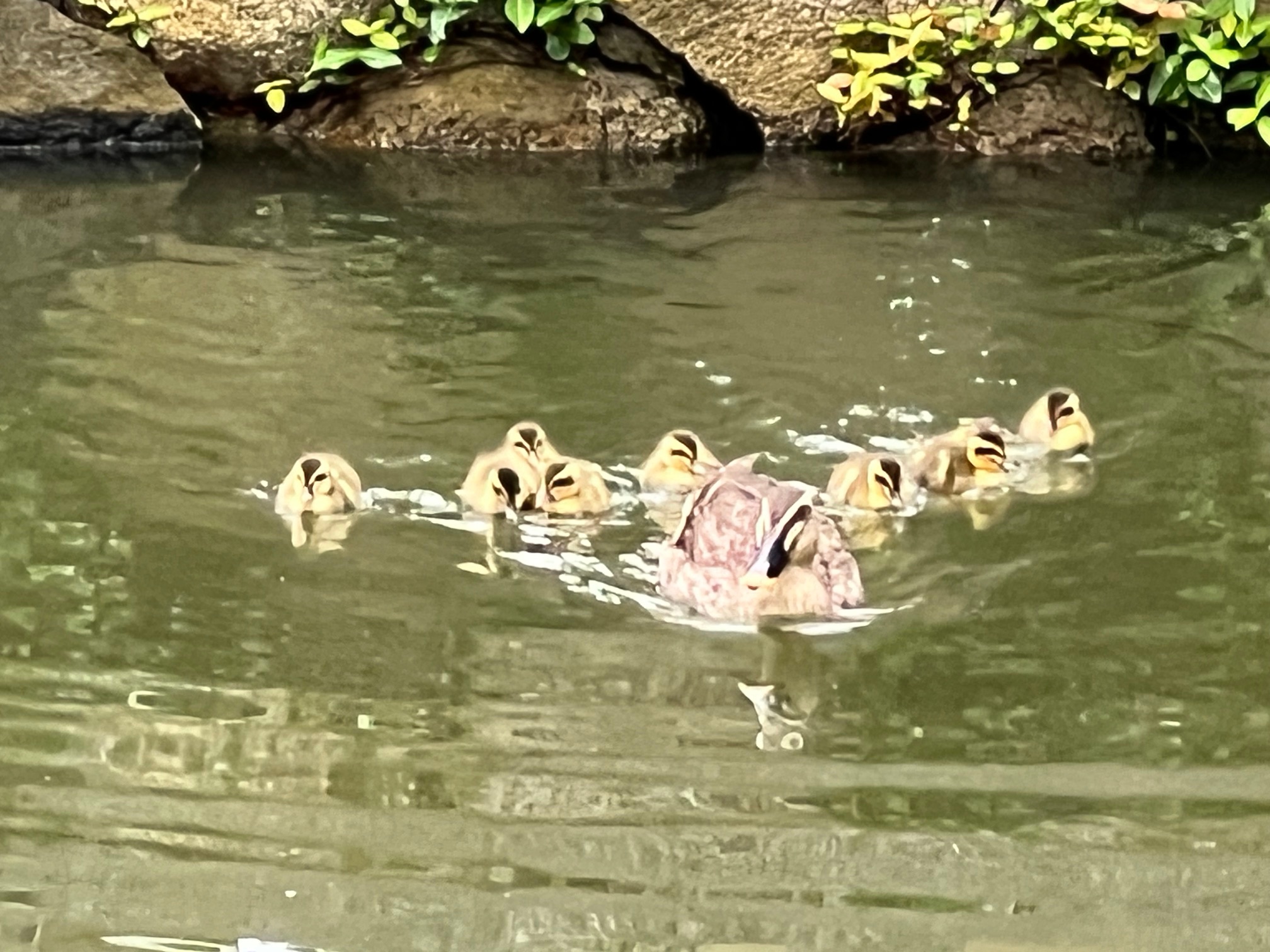 今年もお堀で、カルガモの雛8羽誕生し、子育て始まりました。!