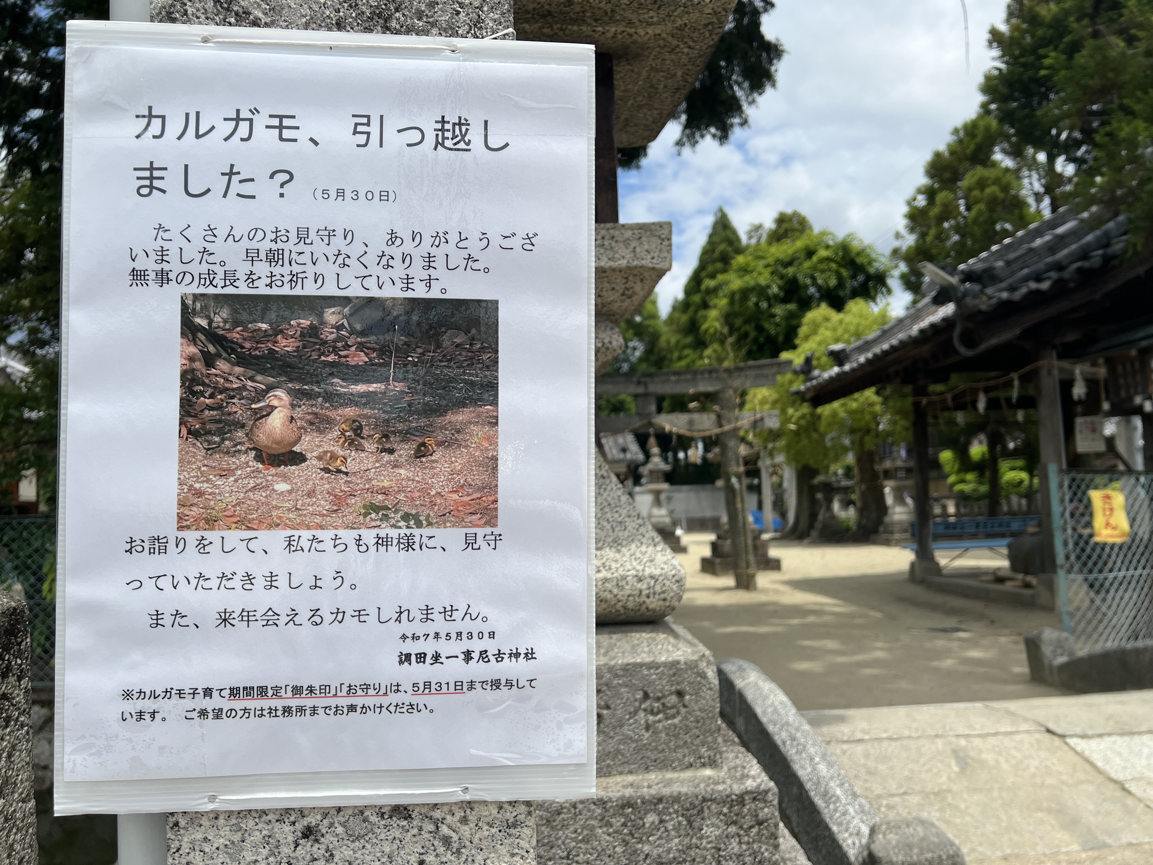 小ガモ8羽全員揃って、神社西の太田川に元気に引っ越して行きました。たくさんのお見守りありがとうございました。