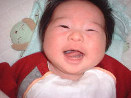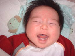 3/14 けーなはばぁば(私の母)が大好き。 ばぁばが側に来るとこんな顔して「あーあー」って