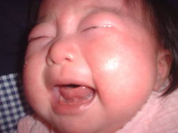案の定診察室で大泣きして先生も苦笑いです。 乳児湿疹がひどいということで要観察という結果に。