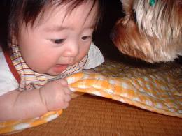 けーなはルルを見るとニコッとするんだけど、ルルは後からそろ〜っと匂いに来たり、寝てる時に近寄ったり。