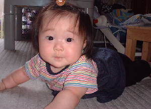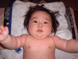 うつぶせになったらずりばいもするんで目が離せなくなりました。 あと、お座りもできるようになりました。