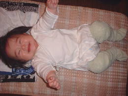 足を開いた時(オムツ替えの時)気づいたこと。 なんだか左右の足の開きぐあいが対称じゃない!