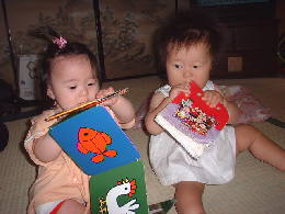 やっぱり4ヶ月もお姉ちゃんだと全然違います。 けーなは本を持っても舐めるだけだけど、