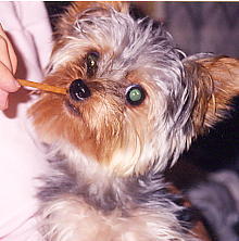 大好きなジャーキー。というか、 自分の高い?ドッグフードはイヤ らしい。 私達が食べてるのが 欲しくてしょうがない。だから一番 好きなのはお米(ごはん)なの。 私達が食べてるといつのまにか ひざの上に乗ってきて必死で おねだりしてます。 お母さんとお父さんはついつい やってしまうけど、tamaはめったに やりません。←ケチじゃないよ(笑) 人間の食べてるのをやるのは あんまりよくないらしいからね。 |