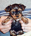 うちに来てすぐの頃です。 抱っこしてるのはだんなです。 この頃はホントに真っ黒で、 どこに目があるのかもわからない 状態でした。 |