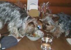 「風太くんいっぱい食べるなぁ ルルにもちょうだいよー」 なかなか食べれないルル・・ 「りゅうくんのママがねー おいしいレバーをくれたの♪ それ食べたらお腹空いてきて お野菜もガツガツ食べちゃった」 |