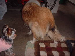 お姉ちゃん・・・わたし・・この子苦手なの。 なんとかして・・・。 まとわりつかないように、 吠えないように、ちゃんとしつけて・・・ りんばあちゃんスキッ♪ かまって欲しいでちゅ。 遊ぼうでちゅ♪
