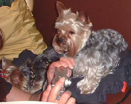 右)姫ちゃん 左)風太くん 親子とは思えない大きさの違い(笑) 姫ちゃんって本当にワルワル? すっごく静かだったよー 他の子ペロペロしてたけど・・・ |
