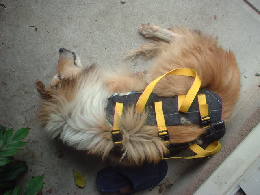 雨が降ってきたから・・と部屋に入れても朝には庭でビチョビチョ。 仕方がないのでヒモでつないでおくと