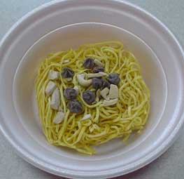 | サークルKサンクスと麺屋武蔵とロッテのガーナとのコラポ商品。 味噌ラーメンの上に、ガーナチョコレートがのっているという、 ショッキングなビジュアルのわりに、味はかなり正統派なインスタントラーメンです。 具材の中にもチョコレートが入るので、かなり甘いんじゃないかと心配したのですが、 溶かして食べるチョコレートの甘みも計算した、辛目の味噌味のスープになっていて、 腰のある麺とうまくマッチングしていました。 変わったバレンタインのプレゼントとしてもいいかと思いますが、 見た目で拒否されるおそれがありますので、お気をつけくださいまし。 298円也 販売者 株式会社とかち麺工房 |