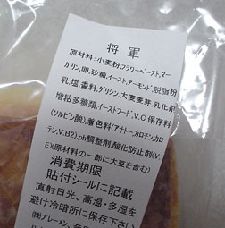 | このパンの名前は「将軍」です。 一見パイ生地にクリームの挟まったおいしそうなパンなのに、なぜか「将軍」 実際食べても、生地はさくさく、甘さ控えめのクリームもいい感じ。 なのに「将軍」・・・・将軍って何? 名前の由来をいろいろとネットで調べてみたのですが、 このパンに関する情報がなく、 あまりに気になって仕方なく、袋の表にあった本社に電話をかけて聞いてみました。 最初にでた女の人:「はい、ブレーメンです」 私:「あのーどなたにきいたらいいのかわからないのですが、 御社の将軍というパンの名前の由来を知りたいのですが・・・」 最初にでた女の人:「(怪訝そうに)失礼ですが、どちらか企業の方ですか?」 私:「あ、すみません。一消費者というか、パンを購入して食べたものなんですけど」 最初にでた女の人:「少々お待ち下さい」 私:「(わーどないしょーこんなこと聞く人いなかったんだー)」 男性担当者:「お待たせいたしました。将軍の名前の由来ですね」 出てきたのは声が明るく優しそうな担当の方でした。 男性担当者:「作った人間はもういないのですが、聞いた話では、 名前のように強くて一番売れてほしいという希望をこめて作ったときいています。」 私:「名前と実際のパンそのもの(甘いイメージ)と、かなりギャップがありますよね。」 男性担当者:「はははっ!(笑) そうなんですけど、作った人が今はいないんで、今ははっきりはわからないんですよねぇ」 私:「このパンは売られて長いんですか?」 男性担当者:「そうですね、かなり前から売ってます」 命名し作った人が、退職されたのか、はたまた創業者で亡くなられたのかどうかは謎ですが、 それもそのときに担当者に聞いとけば良かったと、後から思うばかり。 恥ずかしいのでたぶんもう電話はしないです。 作った人もいないまま、商品だけは会社に残っているという、 いろんな意味で謎の多い「将軍」は本当においしゅうございました。 ブレーメンの担当者様、 こうした電話に不慣れな私にも、ご丁寧に回答いただき、 かつ、ホームページでの紹介も快く了承いただき本当にありがとうございました! 136円也 製造者 株式会社ブレーメン |