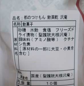 | こんなん初めてです。漬物の飴です。 フリーズドライの漬物が飴の中に入っています。 最初は普通の飴ですが、 舐めていくと、すぐに塩気と漬物の風味がでてきて、 そうこうするうちフリーズドライの粒々が飛び出し なんともいえない味わいになります。 まさに漬物飴ちゃんです。 全部で4種類あったのですが、 2種類が限度だろうなと思って買ったものの、 1つにすればよかったと今になって後悔しています。 各200円也 製造者 京都森乃家 |