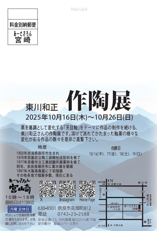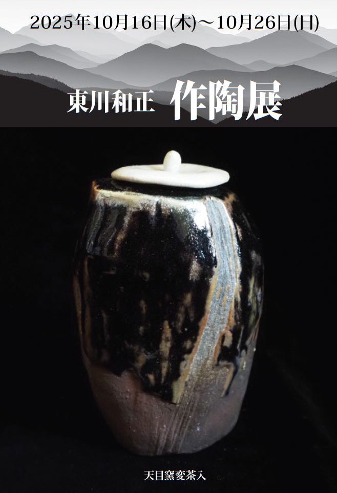 黒を基調として、様々な色風合いに変化する天目釉をテーマに、作品を作り続けておられる東川和正さんの作品展です。