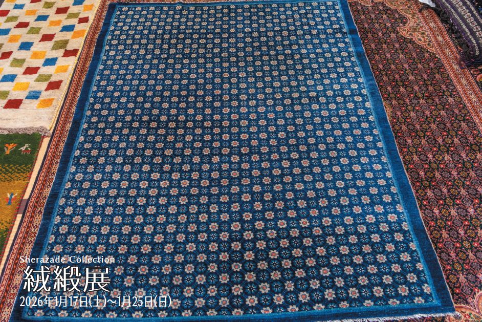 あーとさろん宮アでの最初の絨緞展は1月では有りませんでした。その1月ではなかった絨緞展の一番最初は、母も私も大好きな藍染めの絨毯をずらりと集めた展示会でした。その後何度目かには、すっかり年の始まりが絨緞展から始まることになりました。