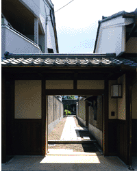 元興寺に隣接するこの町家は、通り庭と4室1列を基本に、奥店に6帖の和室、中庭を挟んで4帖の踏込みと8帖の座敷が加えられた表屋造の様式としては、数少ないタイプであったと言われています。明治時代に麻を商う商家として建てられたものですが、その後医院として使われるなど住み手が替わるたびに何度も改造を受けていました。