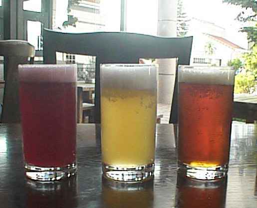 ビールの方はケルシュ、アルト、黒、爽やかな酸味のあるブルーベリー発泡酒各グラス500円。三種のセットが600円でお徳です。