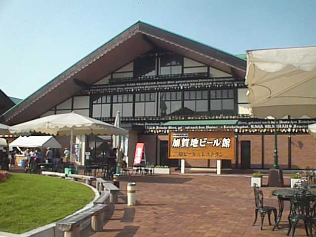 ガラス館の左手にあるこれも大きな建物が加賀地ビール館。こちらは450席もある焼肉がメインのレストランです。使用しているのは能登牛。メニューは和牛ロース焼肉が2人前1800円から。カルビ、タン、レバー、ホルモンなど300〜1500円。 また、ユッケ800円、タタキ700円、レバ刺し750円もあります。