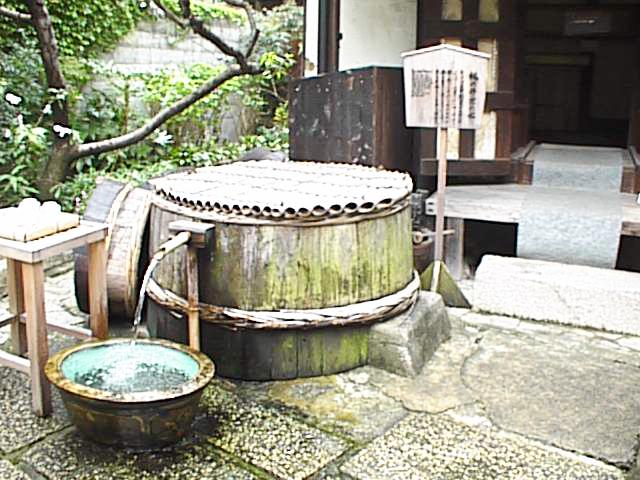 一歩記念館の中に入ると、酒造作業場跡のいにしえの道具類とともに、立派な書院や粋な中庭などを見ることができます。土蔵前には「桃の井」があり、こんこんと湧き出るこの名水は酒造りに、また現在ではビール造りに使用されています。水が目当ての人は、持ち帰りもできるようになっています。