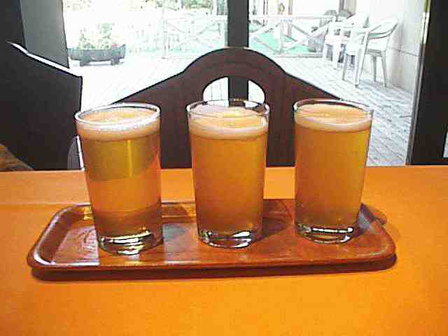 このレストランには小憎らしい企画があります。すなわち、ビール3種のお試しセットを飲み比べて、ラガービールをばちり当てた人には賞品を贈呈するというもの。