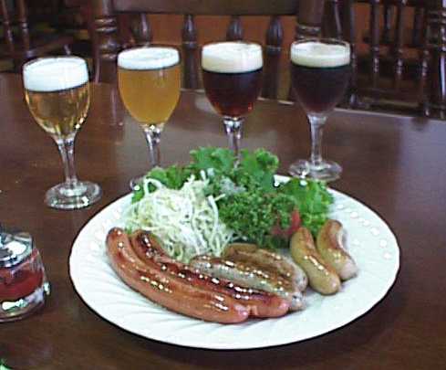 ビールの方はグラス380円、ピッチャー1500円、4種お試しセット850円。4種いずれも軽くのど越しのさわやかさが特徴。小さいタンクがずらっと並んでいるのがレストランの中から見ることができますが、たくさんのタンクで4種のビール製造に対応しているとのこと。
