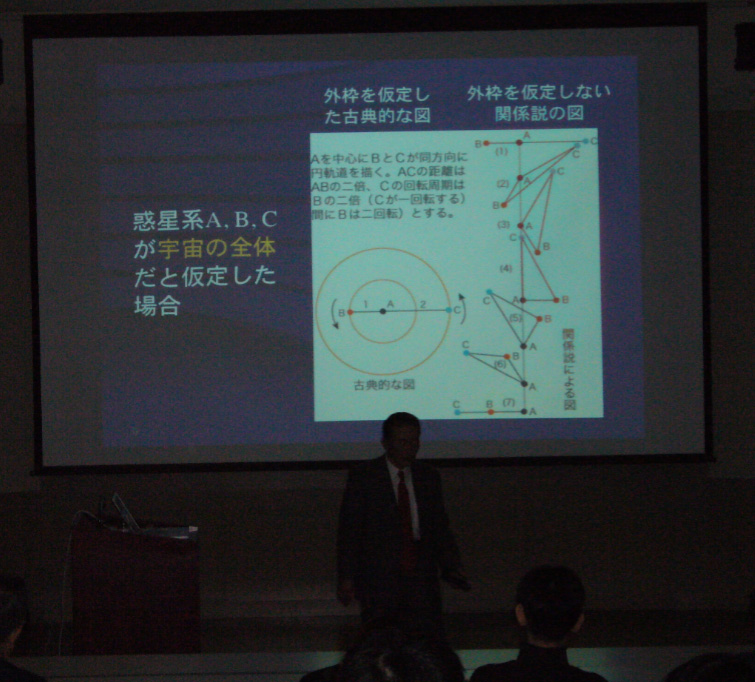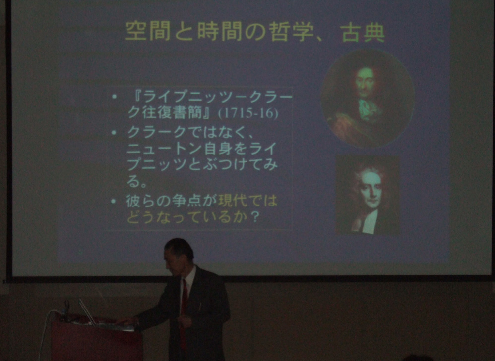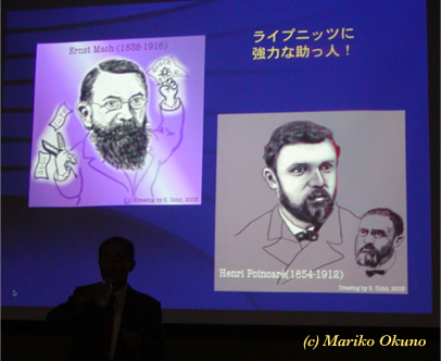 Let me add a final remark (not included in the lecture). I know several people are ciritizing me by saying that I praise Leibniz too much. But beware, you fools, Leibniz (and Newton, for that matter) is 100 times cleverer than you and me. We've got to be fair to a historical figure, and "to be fair" means in this context, not to repeat what Leibniz said in his old terms, but to make him alive in our contemporary situations (I am sick of a multitude of papers in which Leibniz is dead). Some of his doctrines may be indeed old-fashioned and wrong; but this does not invalidate many of his ideas (such ideas can be revitalized with enough of Leibniz' original context). Some of my former students said after the lecture, in his shabby blog, that my interpretation of Leibniz is a kind of Whiggism (i.e. the history which takes in the old items from the winner's point of view). I vehemently refuse the derogatory implication of this word. And I wonder why he can say this, because he does not seem to know much about Leibniz, except for such stereotypes as "monads", "teleology", and "preestablished harmony". Do you know Leibniz as he actually was? Isn't that a myth, to suppose the true history? And if you do not know the true history, there should be various ways to reconstruct history. I am just trying one of such ways.You see, the Leibnizian (and the Machian) dynamics has never become an "establishment" (winner) , but we still can find many jewels in it; I am trying to polish some of them (not by Whiggism but by the principle of charity). As long as we aim at philosophy of science, we've got to make a value judgment as regards science (what science should be). According to such a judgment, I am trying to reconstruct what Leibniz was trying to get at. I believe this attempt is much more worthwhile than a shabby criticism (only words, stereotypes) by a guy who just shies away from the hard core science, physics in particular. Wake up, you xxxxxx xxxx!