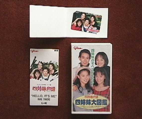 | かなり長い前置きになってしまったが、映画「四姉妹物語」にはキャンペーングッズも豪華なものが製作された。それがこの「ポッキー四姉妹物語 先取り映画缶」である。実は私の持ち物ではなくて知人に頼まれてネットオークションで入手したものである。ロードショーに先駆けて一足早く「四姉妹物語」をチェックしよう、というノベルティグッズで、A4サイズの缶のかばんに「四姉妹物語」に関するアイテムが収められている。四姉妹の全てがわかるというビデオ「四姉妹大図鑑」、ポッキー四姉妹物語オリジナルテレホンカード、 L←→Rが歌う映画の主題歌”HELLO,IT'S ME”の非売品仕様(彼等の製作秘話のようなものが入っているらしい)、そして映画のパンフレットという内容である。これらのグッズを見て思ったことがある。この映画は清水美沙らに好感を持っている男性を主なターゲットにしている。ポッキーと映画、その想定している対象が違うのだ。お菓子(とそのCM)は女性を、映画は男性を。映画のほうはカップルで見ることを想定していると考えるほうが正確なのかもしれない。ともかく、幅広く支持を得ようとするポッキーおそるべし。 | |